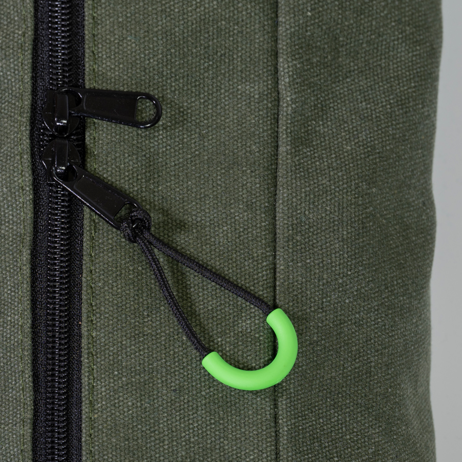 本品はユーザーからのフィードバックを経て2024年5月から開発。長尺のロープと異なり、紐部分には蓄光素材を含まず、黒一色とすることで非発光時にも違和感なくファスナーに装着することができます。